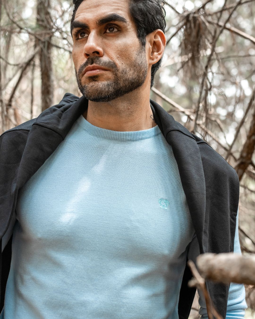 Camisa Antimanchas Oxford Azul Sky Logo Combinado