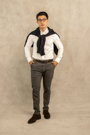 Su corte regular fit y su tejido estructurado hacen de esta prenda un ícono de sobriedad para el hombre que valora lo atemporal.