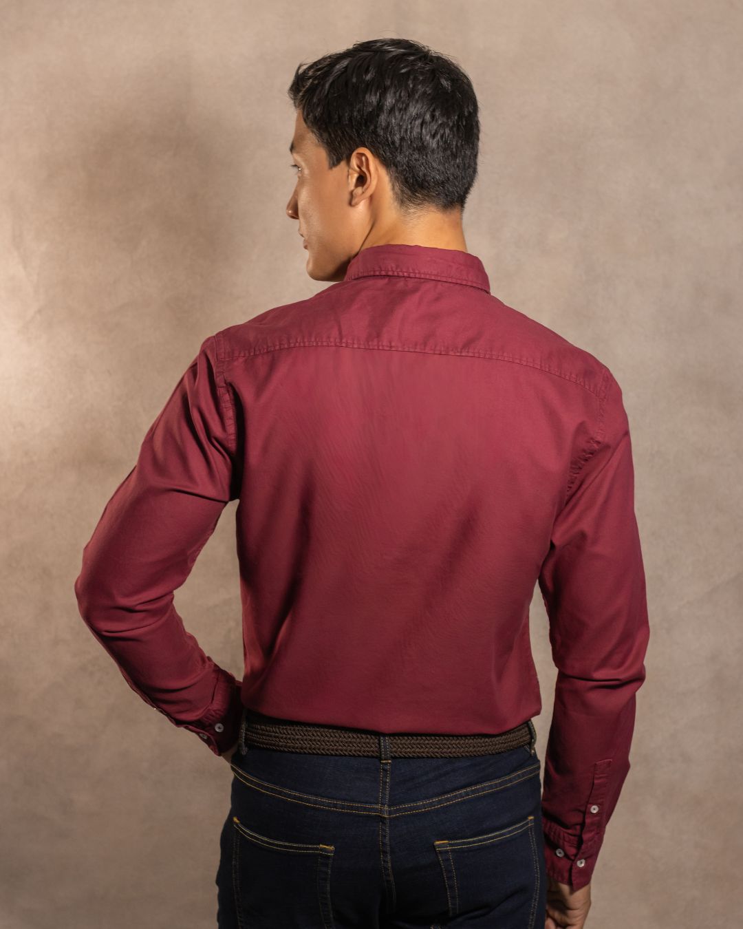 Camisa Antimanchas Oxford Vinotinto – Hombre