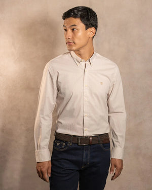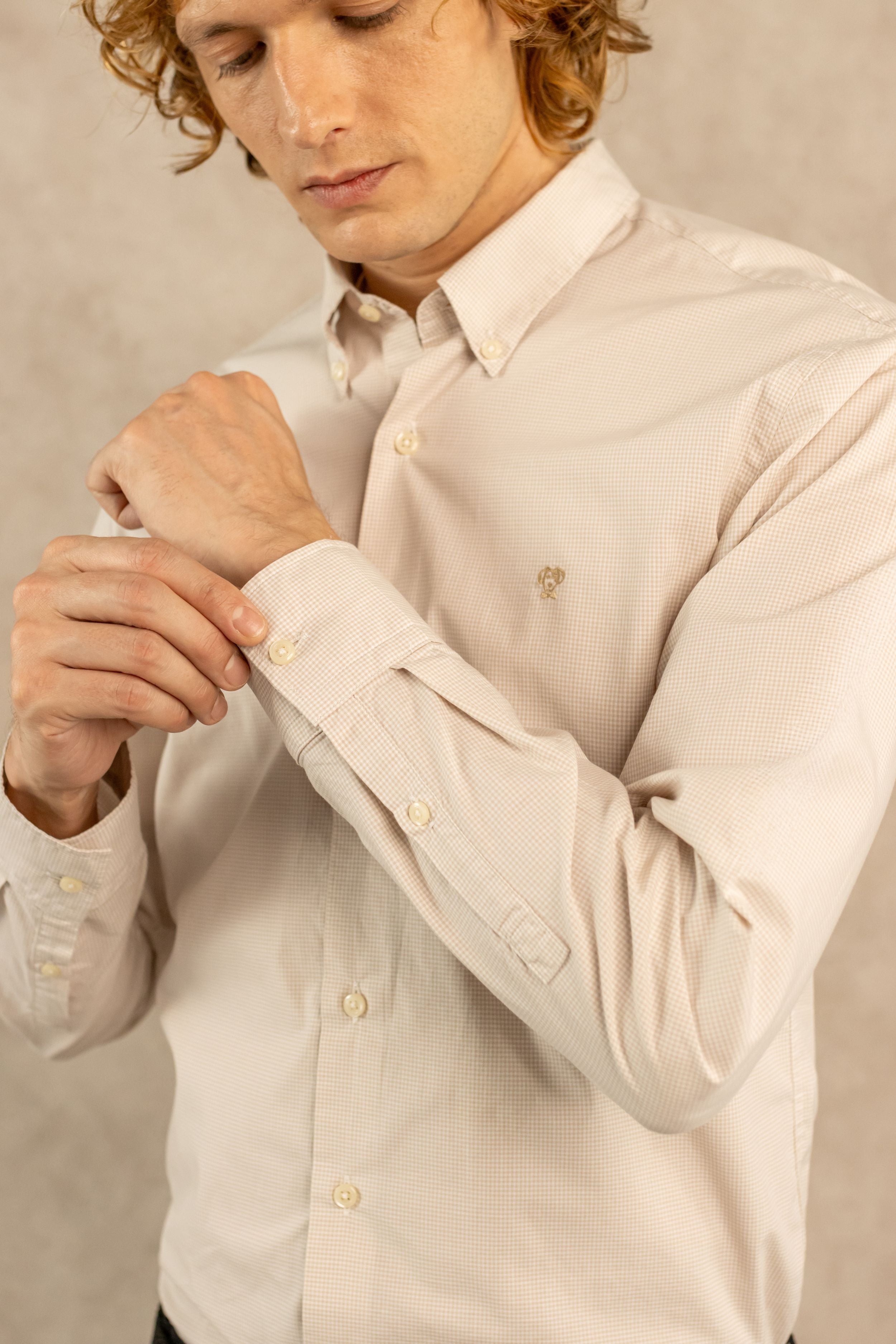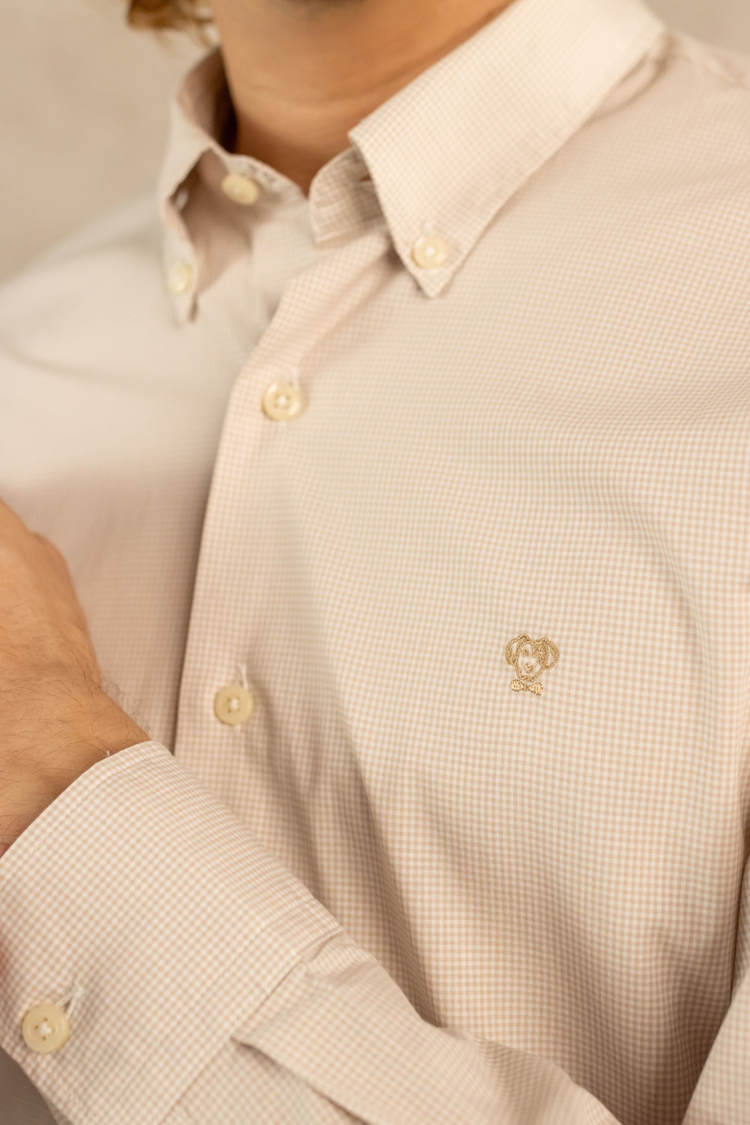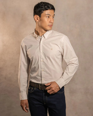 Camisa Antimanchas Cuadros Pequeños Beige Popelina – Hombre