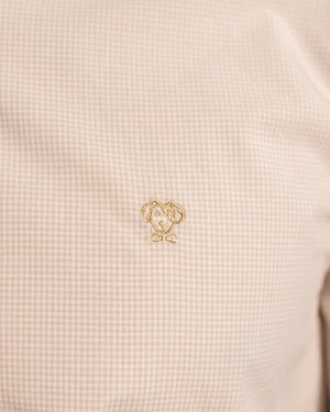 Camisa Antimanchas Popelina Cuadros Pequeños Beige