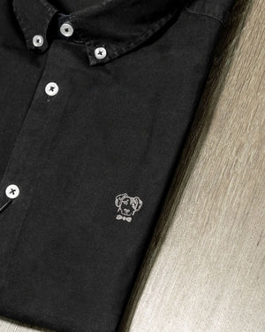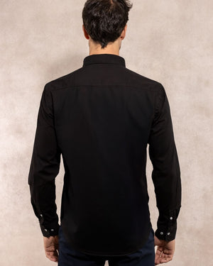 Camisa Antimanchas Negra Logo Gris Popelina – Hombre