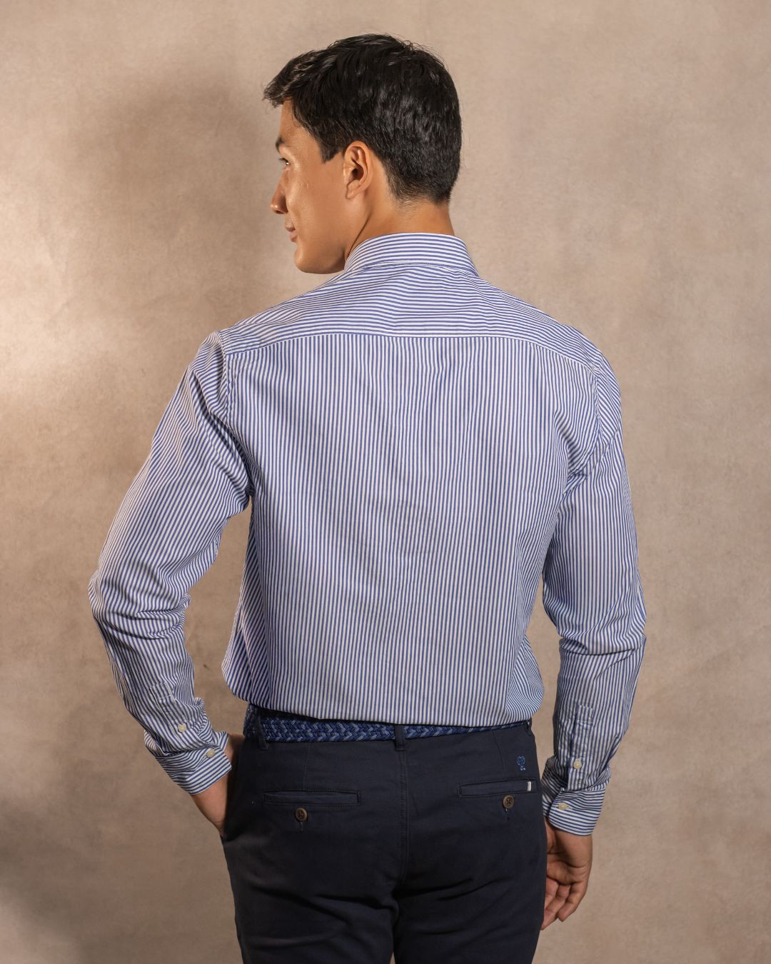 Camisa Antimanchas Popelina Rayas Azul Oscuro