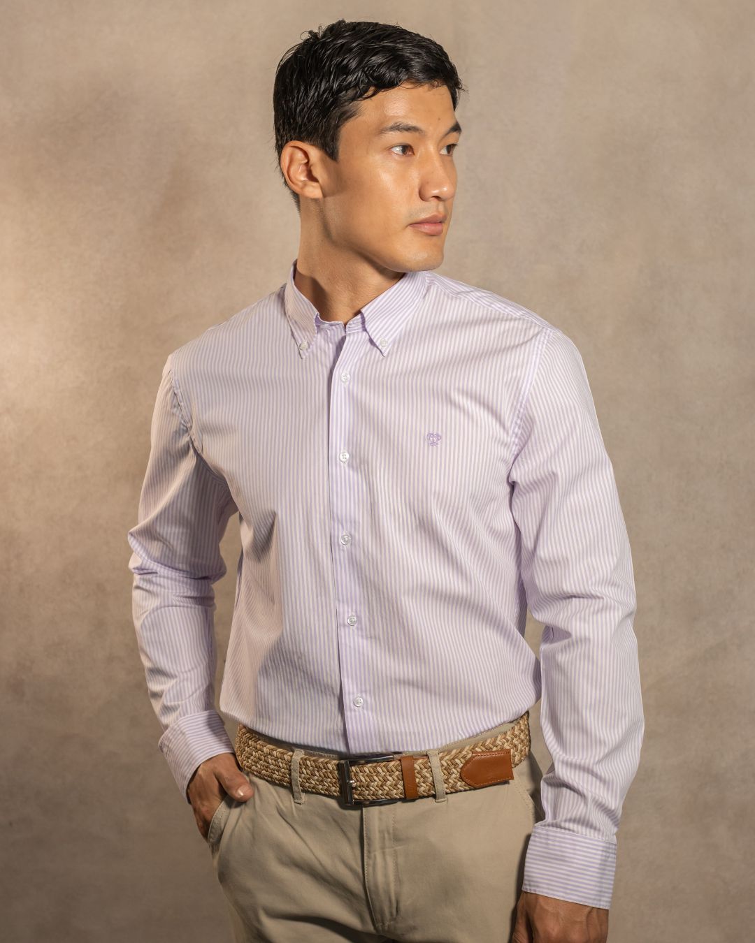 Camisa Antimanchas Popelina Rayas Lilac Logo Contraste
