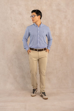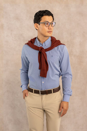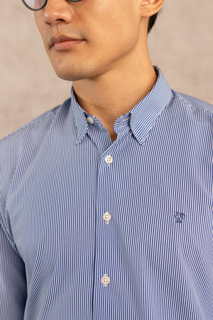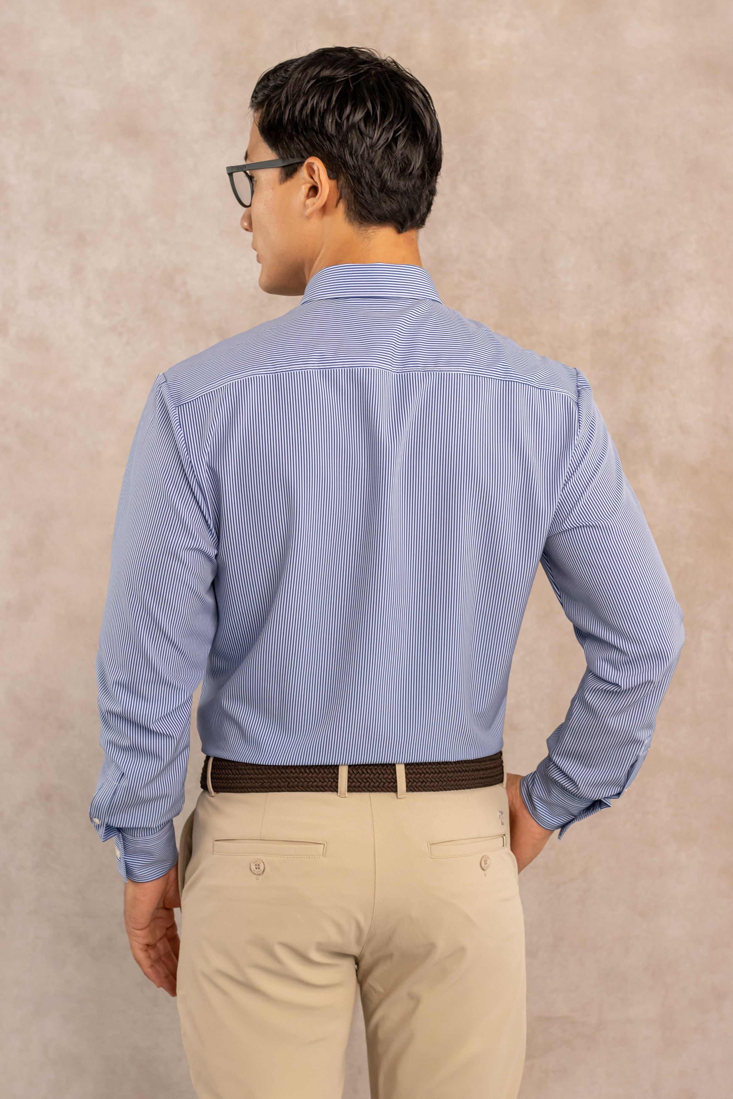 Camisa Performance Antiarrugas Rayas Azul Oscuro