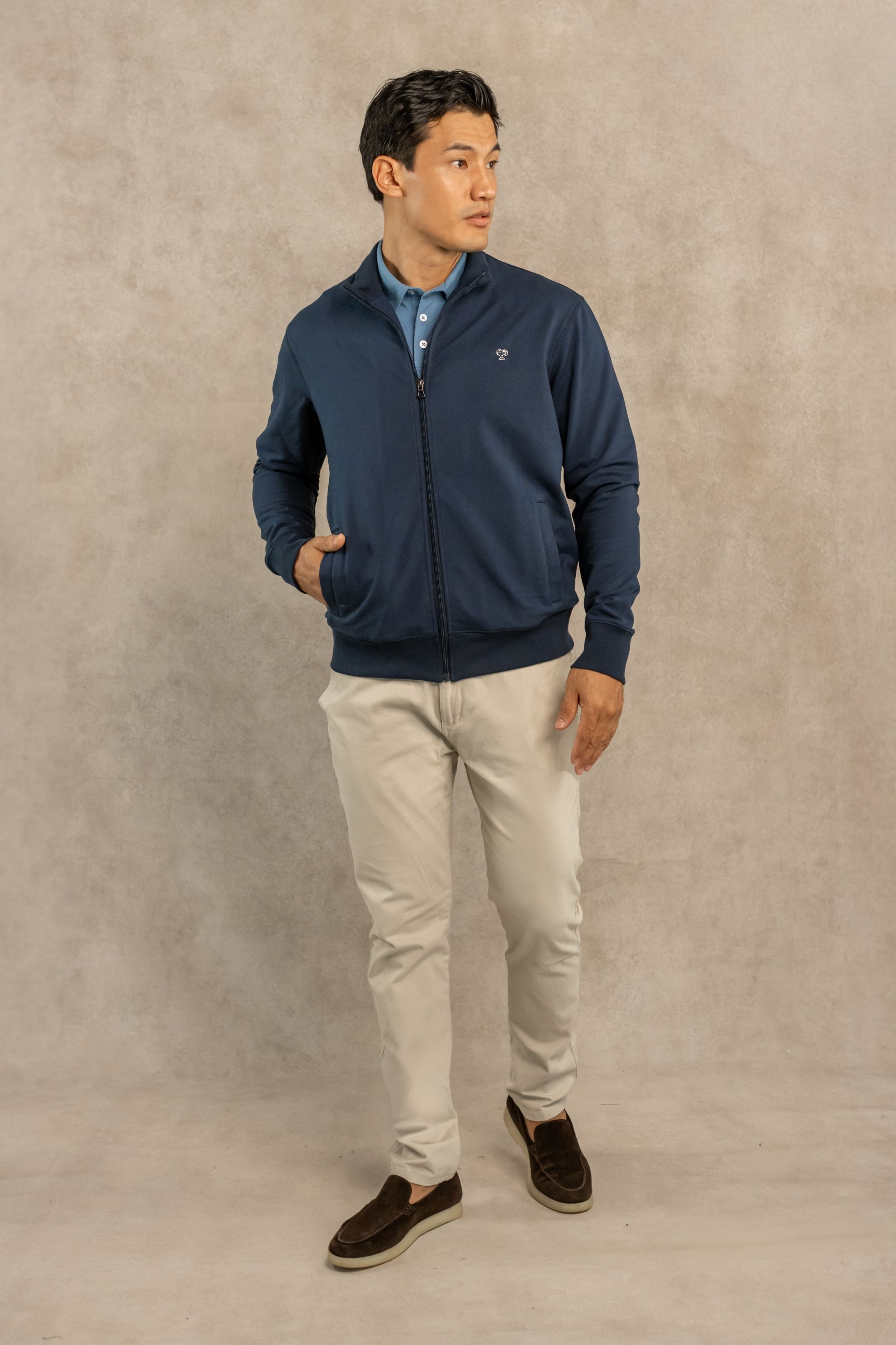 Úsalo con nuestros chinos, jeans elásticos o pantalones performance. El Full-Zip de DANTE se adapta a distintos contextos con la misma clase y funcionalidad.