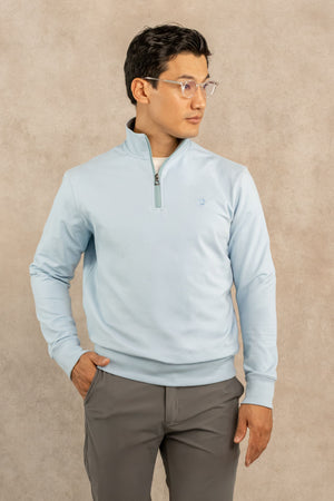 El diseño minimalista con cierre half-zip no solo aporta estilo, sino que te permite ajustar el cuello con total comodidad.