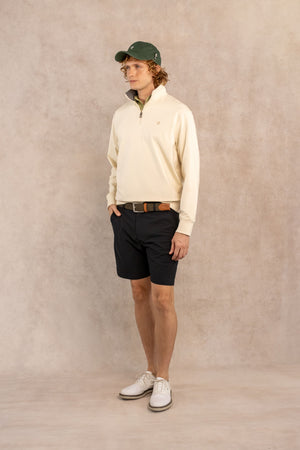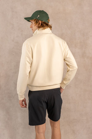 Fabricado con una mezcla de fibras suaves y resistentes, este half-zip ofrece una caída impecable, un ajuste cómodo y una textura que se siente tan bien como se ve.
