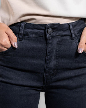 Un jean elástico bota recta que encarna la elegancia discreta y la practicidad necesaria para el ritmo de vida moderno.