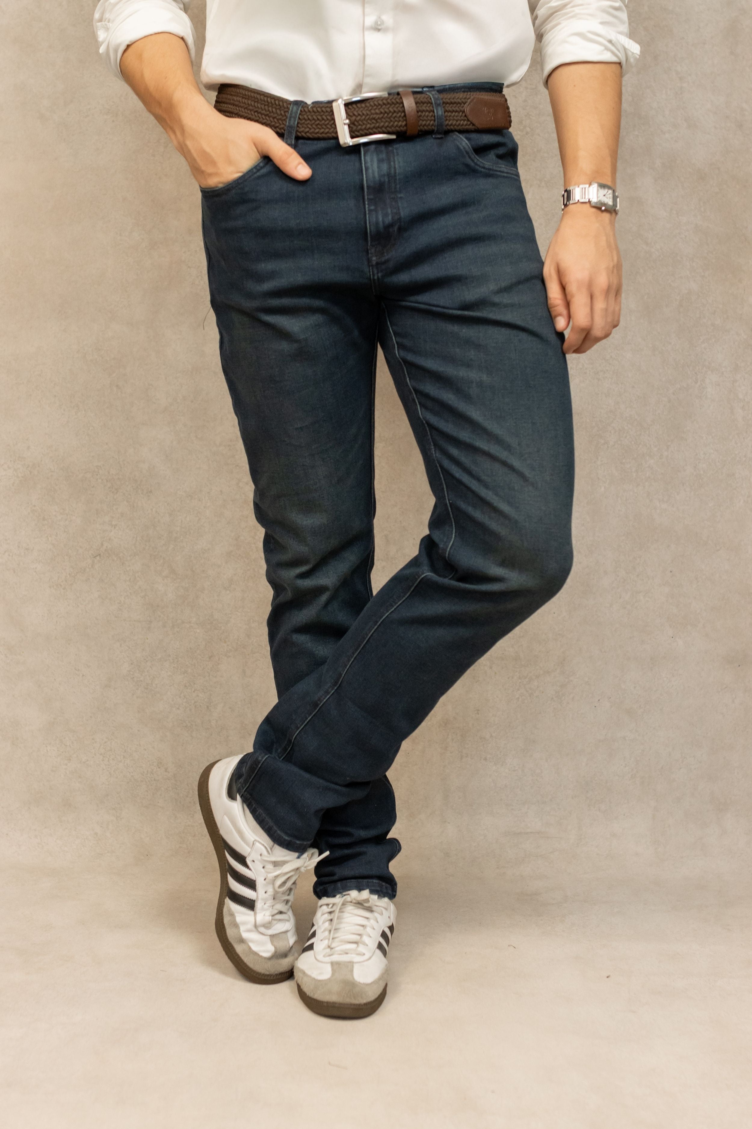 Este jean elástico es la prenda esencial para el hombre que busca el balance entre lo clásico y lo funcional.